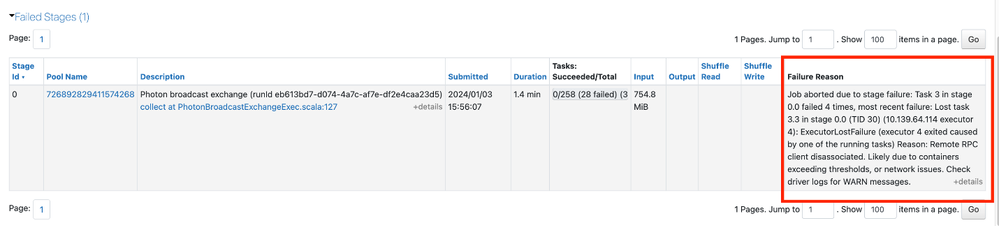 Failing Jobs or Executors: Example of Failed Job