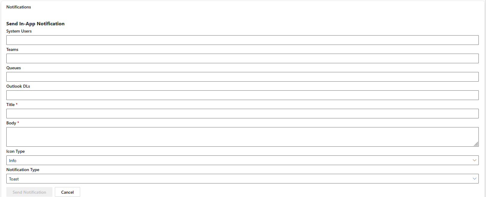 - Supervisor Use Case: If you are a supervisor and your team is set up as a Dataverse Team, you can select the team in the notification form and send in-app notifications to all its members at once.