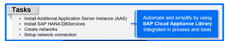 Here, SUM starts an additional application server that runs in the target environment but still belongs to the source system landscape. This enables a controlled transition to a hyperscaler environment (such as Azure) while completing the conversion and migration steps required for SAP S/4HANA.