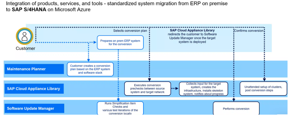 This describes the tool guided migration of an on-premises SAP ERP system into Microsoft Azure, combined with a system conversion to SAP S/4HANA. The Software Update Manager (SUM) acts as the technical engine for the conversion. I will also explain how the SAP Cloud Appliance Library streamlines this process through a step-by-step approach.