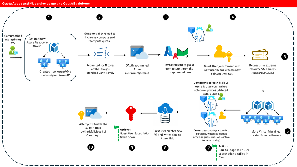 - Abuse Azure’s machine learning services, register malicious OAuth apps, and manipulate quotas to scale up attacks—all while maintaining persistence and evading detection.
