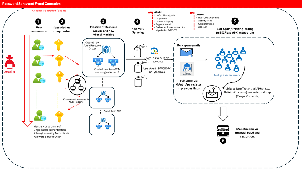 - Multitenant: By controlling multiple Azure tenants, attackers distribute their operations, scale attacks, and maintain resilience against takedowns.