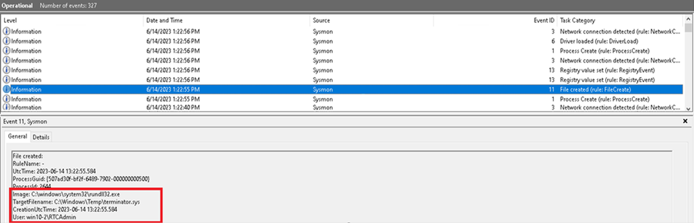 Figure 2: Sysmon Event Log, Event ID 11 - New file creation