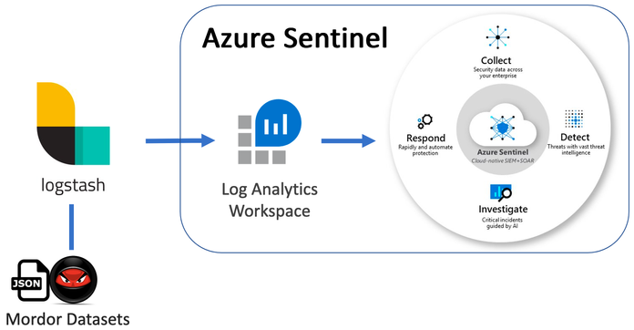 Azure Sentinel2Go also comes with the option to load pre-recorded datasets right at deployment time from the Mordor project. It leverages the same Logstash VM for the data ingestion. You do not have to send anything from your local computer. The data from mordor is downloaded and imported all via ARM templates.