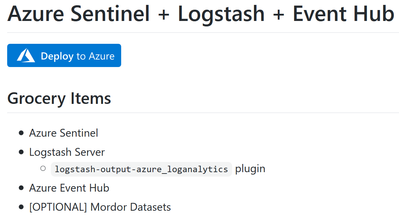 One thing I added to the Azure Sentinel2Go repository is a āDeploy to Azureā badge used on Azure quick-start templates to upload the ARM template directly to the Azure portal. Very convenient! You need to go to Azure-Sentinel2Go > grocery-list > custom-log-pipeline and click on the "Deploy to Azure" badge to deploy an Azure Sentinel along with a custom logs pipeline: