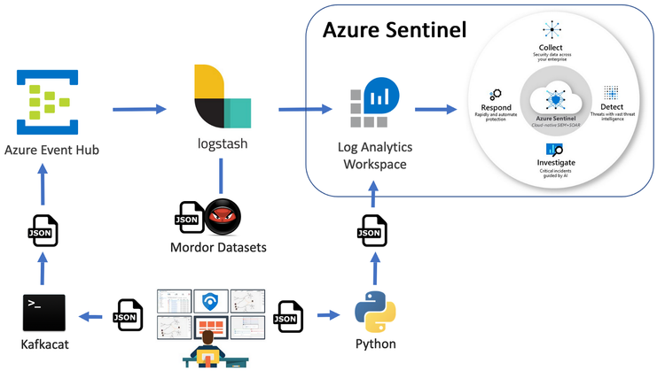 In this post, I show you how to use ARM templates to deploy an Azure Sentinel solution and ingest pre-recorded datasets via a python script, Azure Event Hubs and a Logstash pipeline.