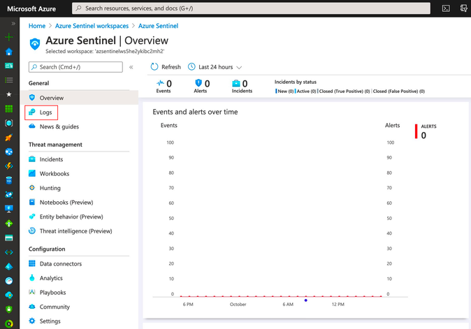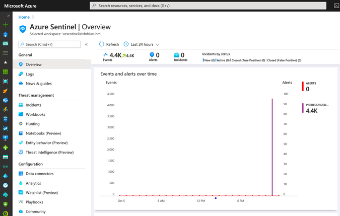 Monitor the deployment. It might take around 8ā10 minutes for it to be done. When it is complete, go to your Azure Sentinel interface. Give it 2ā3 mins for events to start showing. You will start getting thousands of events (300K+).