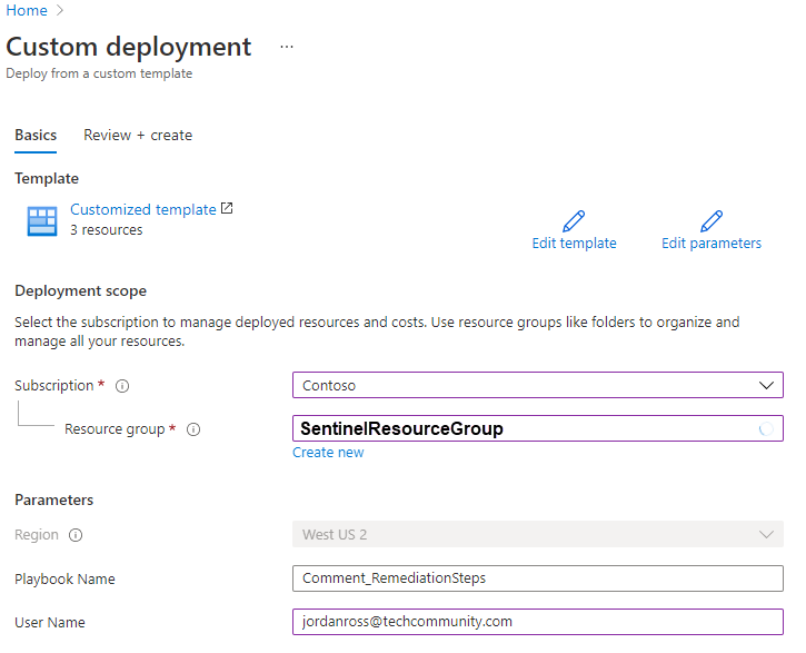 1. To get started, deploy the playbook to Azure using the GitHub artifact using this link: Remediation Steps Playbook