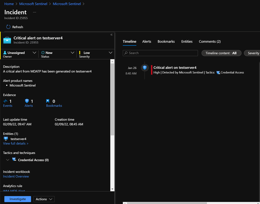 Resulting alert/incident generated from the rule: