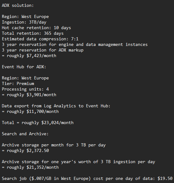 Here is a sample comparison for an actual customer with 3TB ingest a day: