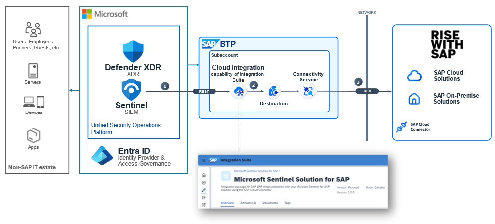 The new integration path leverages SAP Integration Suite to connect Microsoft Sentinel with your SAP systems. The Cloud integration capability of SAP Integration Suite speaks all relevant protocols, has connectivity into all the places where your SAP systems might live, is strategic for most SAP customers, and is fully SAP RISE compatible by design. Are you deployed on SAP Business Technology Platform yet?