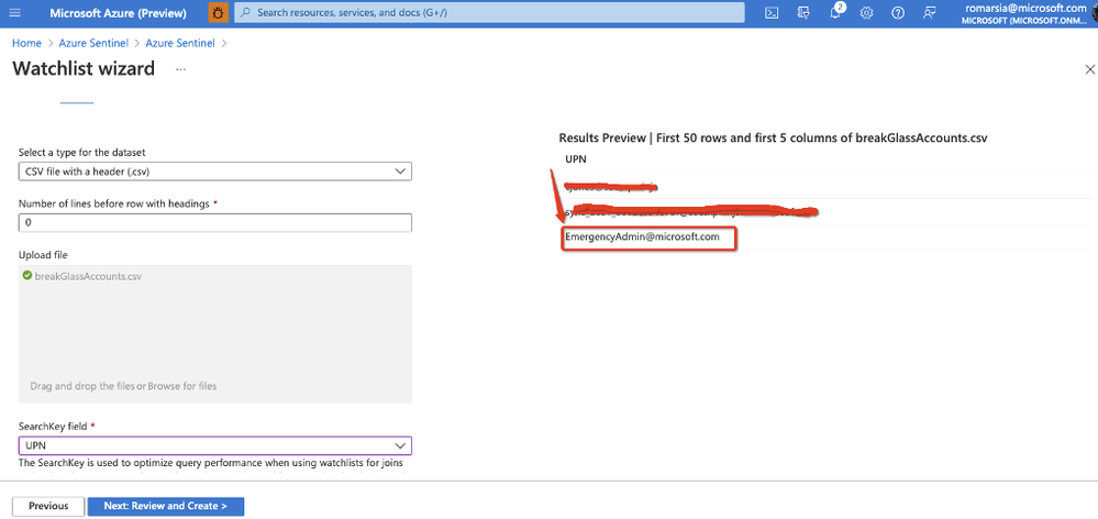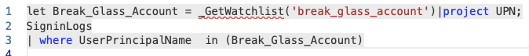 That is why we will start by creating a watchlist that will be used to manage all our break glass account UPN.