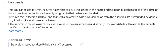 We will use Alert details to provide the name of the account on the incident that will be created.