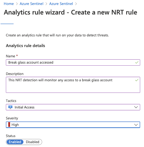 We will name the NRT detection and provide description, tactics, and severity.