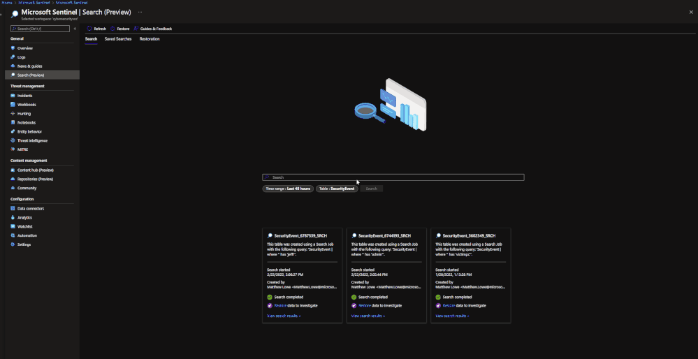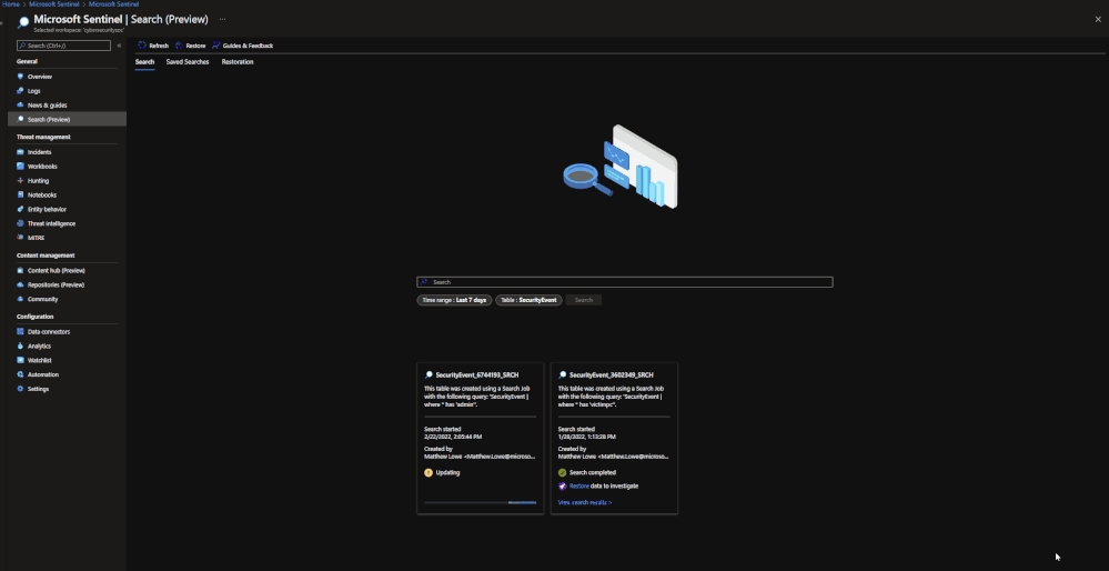 - Restore archived logs from search - Microsoft Sentinel | Microsoft Docs