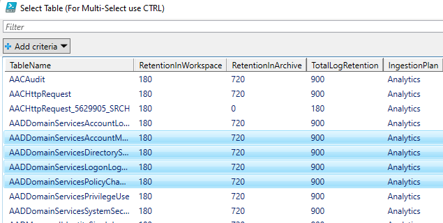 A PowerShell script was developed to allow users to monitor and configure multiple tables at once for both basic ingestion and archive.