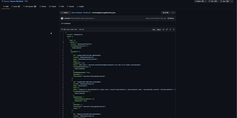 - Go to the Microsoft Sentinel GitHub Repo to fetch the JSON for the workbook.