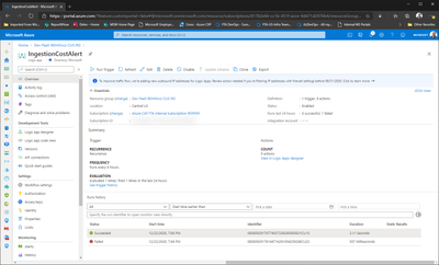 In this step, the aggregated value obtained from the previous step is compared against the budget value you set and should it exceed the amount then the logic branches to the left and sends out an e-mail or a Microsoft Teams message. If you are still within budget, then the logic branches to the right and no message is sent.