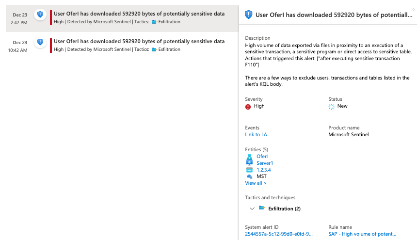 On August 2022, Microsoft Sentinel solution for SAP was made generally available (GA). Together with releasing the Microsoft Sentinel Solution for SAP® Applications, new additional OOTB content has been added. This blog covers five new data exfiltration detection rules included with the Microsoft Sentinel Solution for SAP® Applications (these rules are currently in preview).