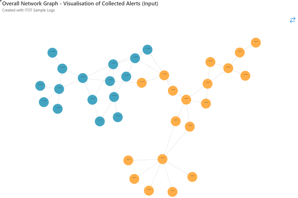 The overall network graph above is generated from sample logs, where blue and orange nodes represent the IT and OT domains respectively.