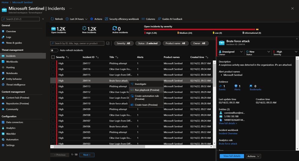 Automation is a key facilitator for a SOC’s ability to save time and let the team focus on what matters most. Over the last year we have introduced a new Automation Rules platform which allows playbooks to run when incidents are created, for fast triage and response. We have also released 200+ playbook templates and exposed them in a new tab so you can start getting your value from automation as quickly as possible. But we know that not all of the automation scenarios can be fully automated and run behind the scenes. So we have added another to help you in these cases. This feature was already available for Logic Apps based on the Microsoft Sentinel Alert trigger, and now it’s being made available for those based on the Microsoft Sentinel Incident trigger as well.