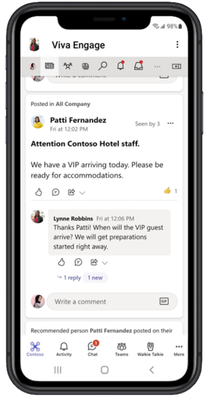 Building connections across teams can help break down barriers and leverage the collective knowledge of the frontline workforce. With employee engagement solutions in Microsoft Teams like Viva Engage, organizations can provide ways for frontline workers to express themselves, build a network, learn, and connect.