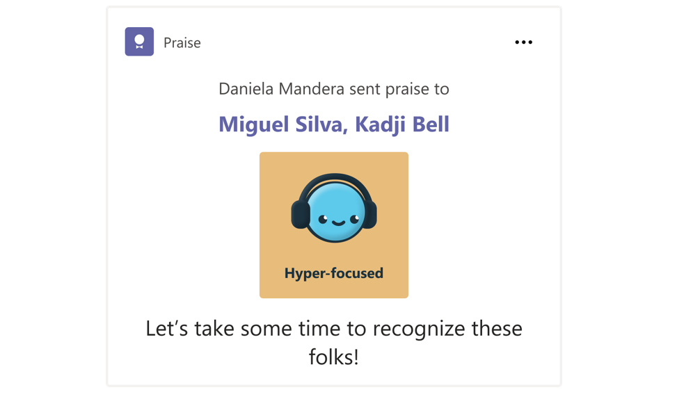 Availability: Customizable Praise Badges will be coming later this summer. Praise badges are on-by-default and require administrator action to disable in the Office 365 admin center. Learn more about Praise here.