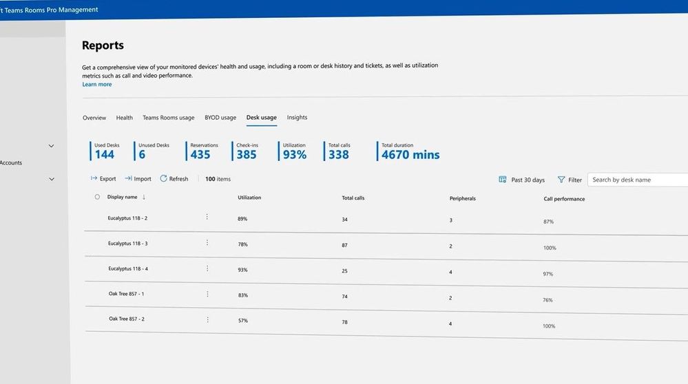 View utilization data for bookable desks in Teams Rooms Pro Management portal
