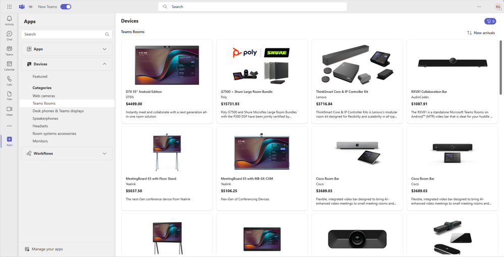 Starting in January, there will be a new way to view, compare, and purchase devices certified for Teams from your Teams Desktop. Apps in Teams is updating to allow you to search for or browse different devices, stay informed of new offerings and device brands, and explore devices for shared and personal spaces alike. When you are ready for a hardware upgrade, you can even purchase devices directly from the Teams App Store.