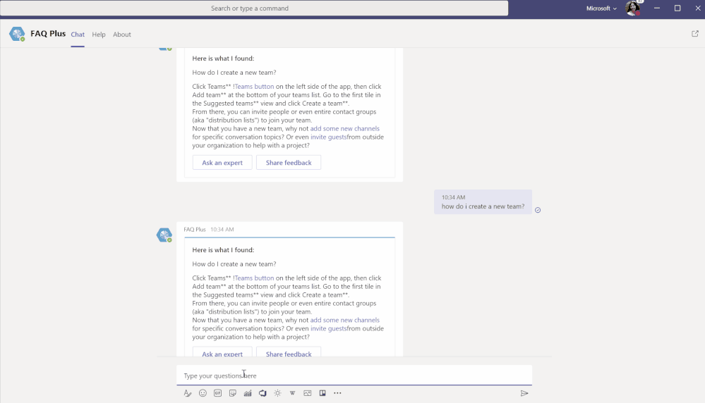 Now the employee has a question about a new Teams feature and needs instant help. It is as easy as asking a friend through a quick chat message.