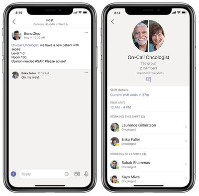Knowing who is on shift and being able to reach them at the right time is key to delivering timely patient care. Often, valuable time is spent trying to identify the correct contact information for healthcare staff members. Currently with targeted communications in Teams, you can manually create tags to organize users based on attributes such as a role, skill, or location. Once applied you can message everyone assigned to a tag at the same time in a chat or channel conversation: for example, you can message all @Orderlies in a ward.
