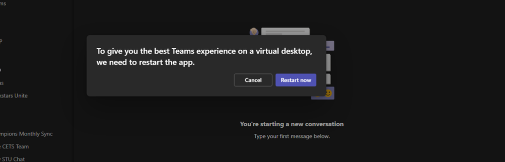 A single restart is required because by default, the first launch experience will be on the old WebRTC-based optimization. Then, in the background, Teams will try to open a virtual channel and if there is a plugin on the user’s device, the next time Teams is restarted it will attempt to use SlimCore (the new architecture).