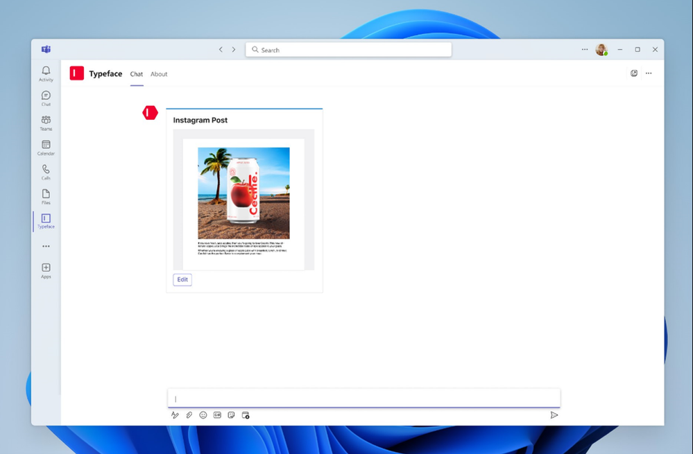 The boost to creative output that Typeface can provide is clear, so it only makes sense to have that force multiplier available in Microsoft Teams. In fact, Typeface has a layer called Typeface Flow, which is all about offering the app on the platform where users work.