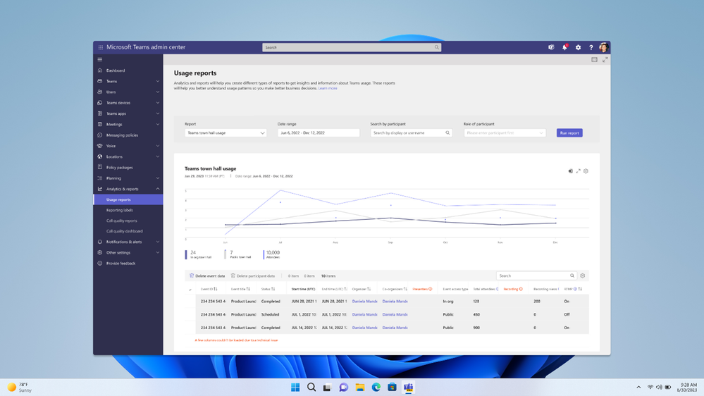 - Town hall usage reports in the Teams admin center (TAC): Analyzing and understanding your event's performance to make informed decisions for future improvements is now possible with town hall usage reports in TAC. Organizers will gain valuable insights into attendee engagement, participation metrics, and overall event effectiveness. By leveraging these reports, organizers can identify areas for enhancement, helping to ensure that each subsequent event is even more impactful and engaging. This feature is now generally available.