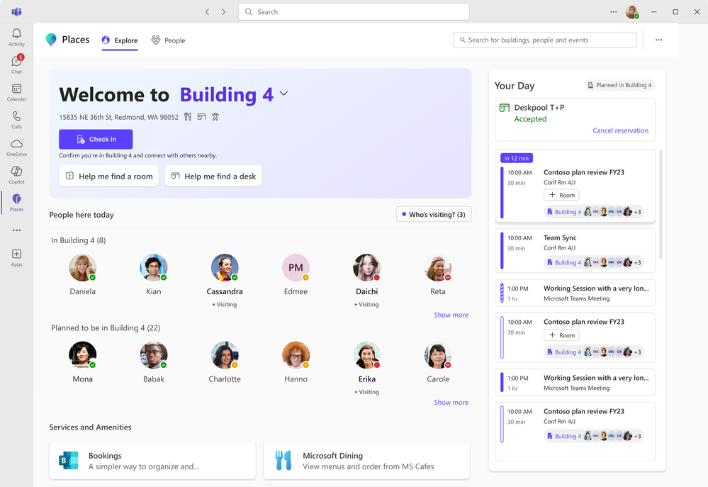 With work location in Teams now including buildings, make your presence known, coordinate with others, and take advantage of AI-assisted booking in the future. Once enabled and opted-in, your workplace presence can auto-update to a specific building when you connect to a peripheral at a bookable desk or BYOD room.