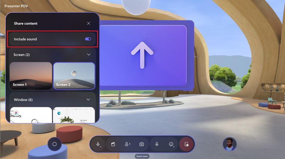 Audio support for screen sharing has now been added in Microsoft Mesh. Presenters will now be able to choose whether they'd like to include system audio when starting a screen share in a Mesh event. This feature is available for presenters in Mesh with a Teams Premium license.