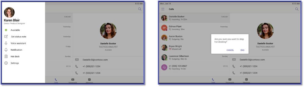 Hot Desking: Users will be able to sign into a phone which has been set up as a shared device. Once users sign in, they can begin hot desking and have full access to their calendar, meetings and call log. When finished, users can sign out to end their hot desking session. This will automatically remove any call logs and history from the device.