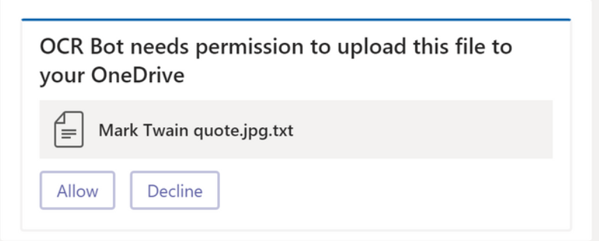 OCR Bot sends a file consent card
