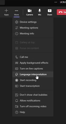 To use live translated captions, we need to click on the meeting window More Options … > Subtitles