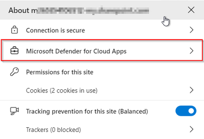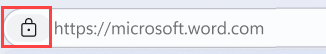 Users can identify that they're using in-browser protection in Microsoft Edge for Business by the additional "lock" icon in the browser address bar as shown in the example below, indicating protection by Defender for Cloud Apps. Unlike standard conditional access app control, the .mcas.ms suffix does not appear in the browser address bar with in-browser protection, indicating that the Edge for Business browser is implementing security measures directly on the  user's device, which can provide reduced latency, tighter control, and better security.