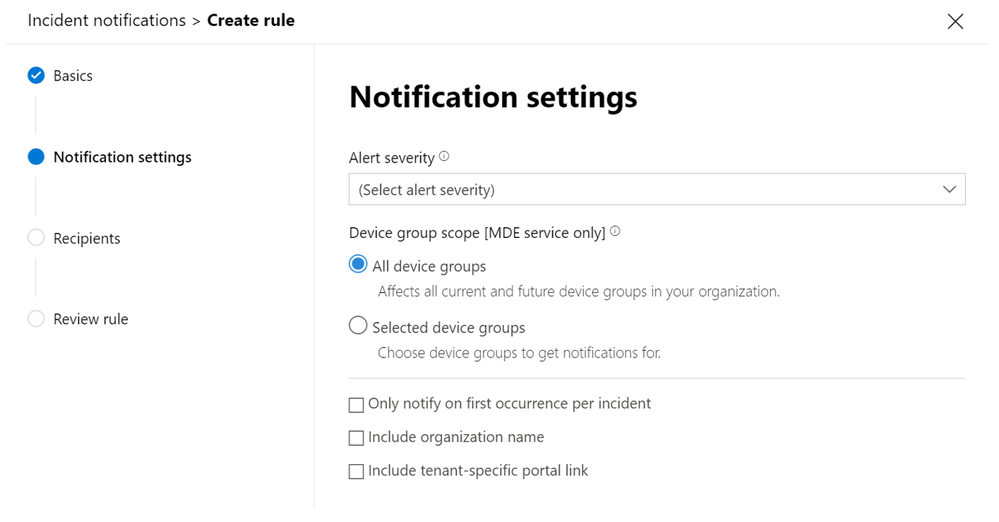Get notifications based on incident severity or by device group. You can also choose to only be notified on the first update for each incident.