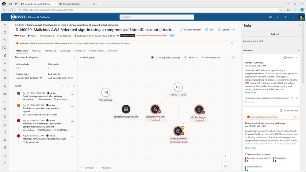 Figure 2. Attack disruption initiated on an AWS attack