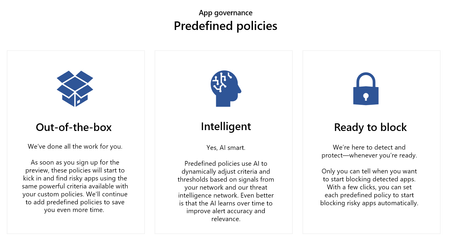We're excited to announce the general availability of predefined policies in the app governance add-on for Microsoft Defender for Cloud Apps. This first set of out-of-box policies represents our comm...