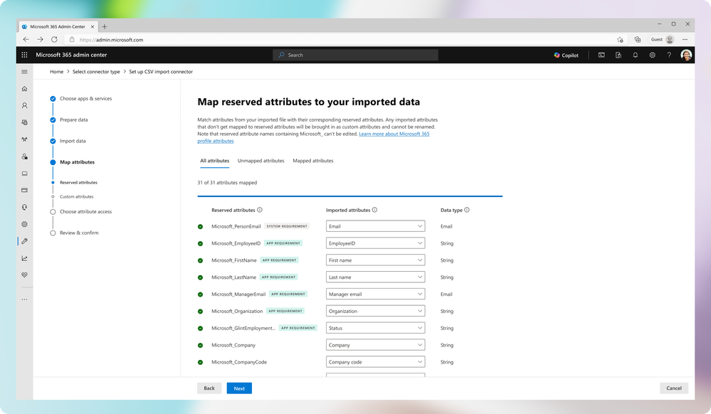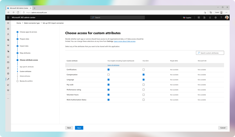 - Upload and map custom attributes, ensuring that even non-standard data can be leveraged across Microsoft 365 and Viva.
