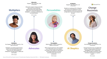 We discovered five AI transformation profiles: Multipliers, Advocates, Persuadables, AI Skeptics, and Change Pessimists. These AI transformation profiles highlight key dif...