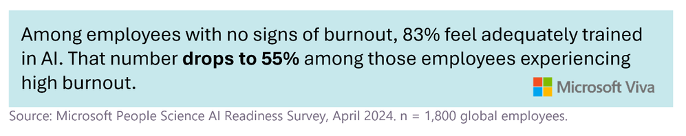 Employee burnout is a sign that something needs to be addressed in the workplace to best set employees up to be happy and successful. Employees who feel burnt out have a hard time feeling prepared and trained to integrate AI into their work. If you know your organization already struggles with burnout or dedicating time for learning, consider how you can work AI training into role or function-specific time. When leveraged properly, AI can reduce burnout by reducing time spent on tasks or by helping employees make informed decisions. If an employee is already burned out, they don’t have the capacity to attend training or to learn and that generates a negative feedback loop. Therefore, it’s important for organizations to understand that it’s not only about providing training opportunities that lead to upskilling/reskilling but also supporting employees who want to invest their time and capacity to engage in the training.