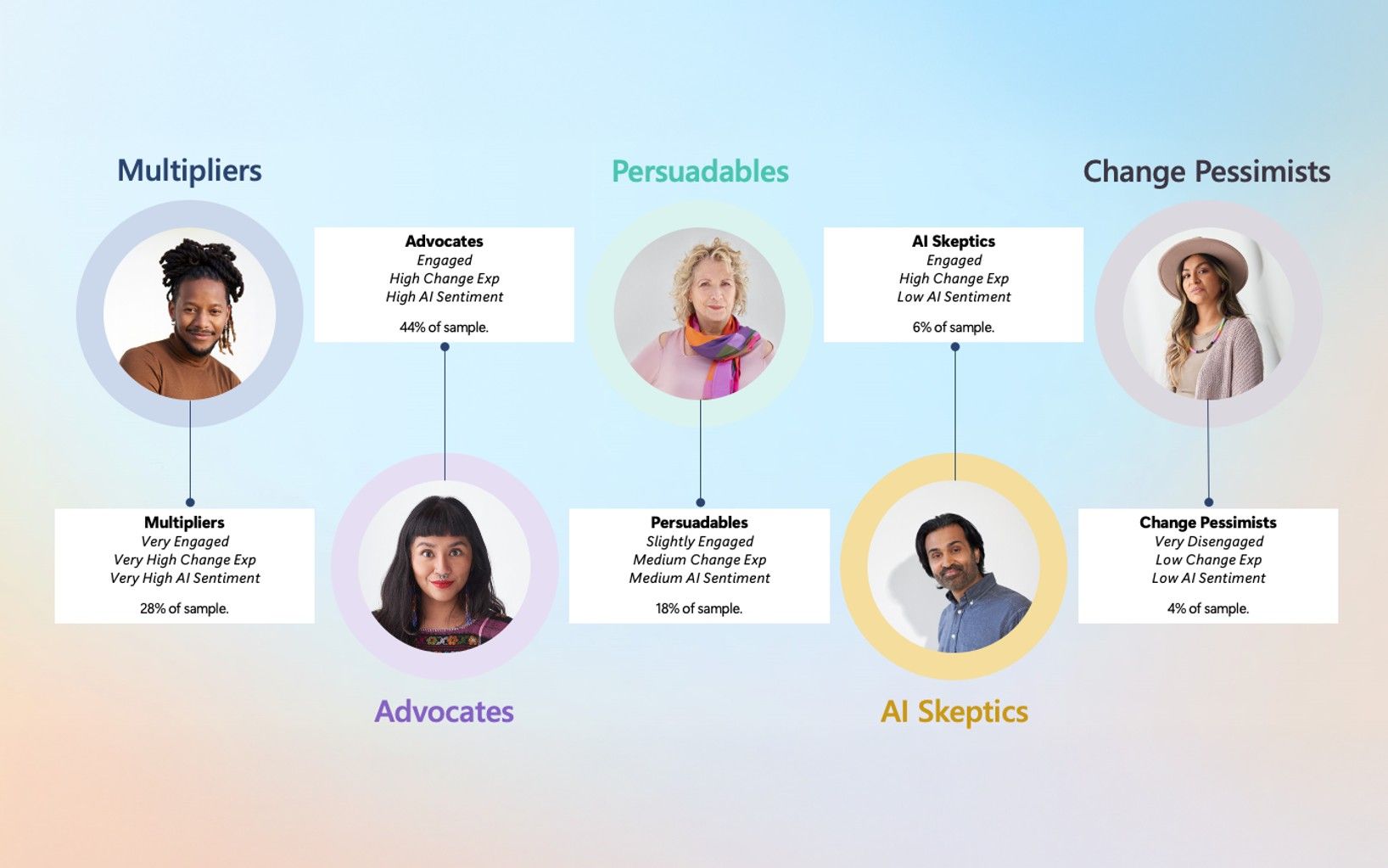 - Advocates: Supportive and quick to adopt AI, following the lead of multipliers