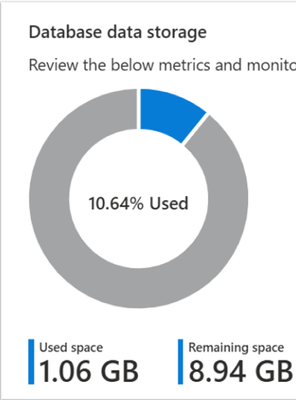 Total database size: 1.06 GB (10.64% used), based on a maximum configured size of 10 GB, with JSON in native binary data type.