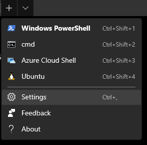 After installing Windows Terminal, you will see a UI like the following one that has 3 shells available being the PowerShell the default shell: