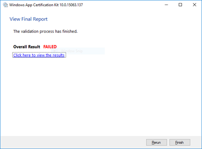 It’s recommended to do some investigations in order to make sure that you haven’t forgotten to do something in the proper way (like compiling your app in Debug mode) but, when it comes to Store onboarding, they won’t be considered as blockers: the Dev Center will accept anyway these packages and they won’t fail the certification (unless, of course, the tester will find problems that can’t be automatically detected by the tool, like a Store policy violation). For example, in this category falls the test called “Digitally signed file test” , which we already mentioned when we talked about the new – Verify parameter of the Desktop App Converter in another post on this blog. Since an app submitted on the Store is automatically signed with a certificate from the Dev Center, it will be accepted even if any of the executables or DLLs included in the package isn’t digitally signed.